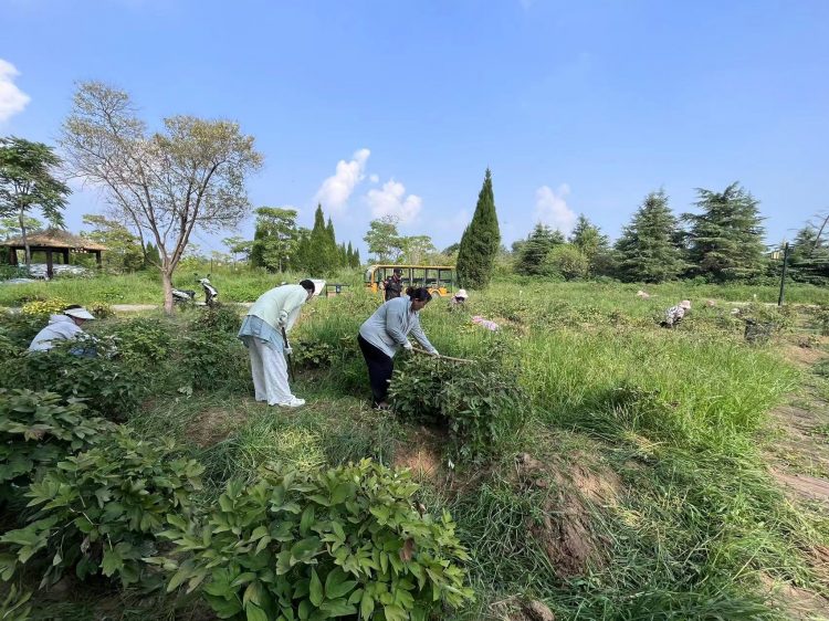 活動(dòng)中,黨員同志們和運(yùn)營人員、機(jī)關(guān)辦公室人員齊上陣,手持鐮刀、鋤頭等除草工具,主動(dòng)認(rèn)領(lǐng)除草修剪區(qū)域,鏟除牡丹花周邊的雜草、枯樹枝等雜物,積極投入到對(duì)牡丹園的養(yǎng)護(hù)工作中去,爭當(dāng)“綠水青山”的護(hù)衛(wèi)者,盡管烈日當(dāng)頭,酷暑難耐,卻絲毫未消減大家志愿服務(wù)的熱情和保護(hù)環(huán)境的堅(jiān)定決心。?