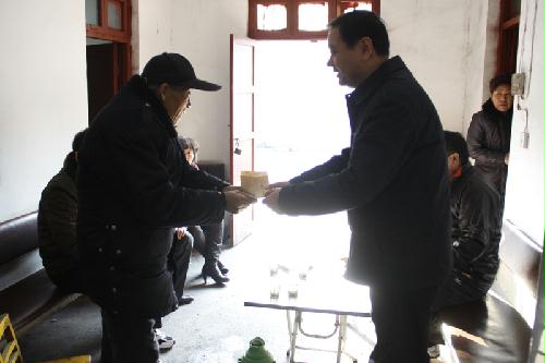 2011年12月10日上午,淮北市建投控股集團(tuán)有限公司黨組書記、總經(jīng)理任啟峰、副總經(jīng)理宋平等領(lǐng)導(dǎo)同志來到烈山區(qū)宋疃鎮(zhèn)雷山社區(qū)看望貧困黨員,并送上了米、油等生活用品。