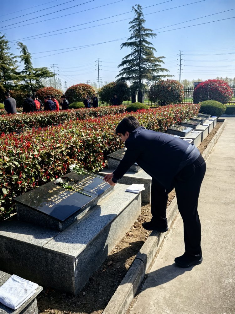 活動伊始,全體黨員整齊列隊,懷著崇敬之情向革命烈士敬獻花籃,寄托著對先烈們的無限哀思與崇高敬意。隨后,在鮮紅的黨旗前,全體黨員莊嚴地舉起右拳,重溫入黨誓詞。鏗鏘有力的誓言在陵園上空回蕩,彰顯了黨員們不忘初心、牢記使命的政治信念。最后,黨員們有序參觀了陵園內(nèi)的紀念碑,支部書記楊旸同志帶領(lǐng)支部黨員紛紛向英雄先烈們獻上鮮花。