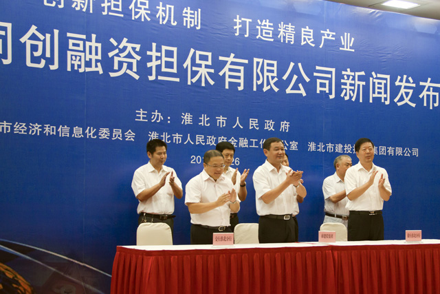 8月26日上午淮北市人民政府舉行市同創(chuàng)擔(dān)保公司增資擴股新聞發(fā)布會,并與交通銀行淮北分行、徽商銀行淮北分行簽訂合作協(xié)議。安徽省信用擔(dān)保集團副總經(jīng)理鄧壽安、市委常委常務(wù)副市長楊軍、市人大常委會副主任余敏輝、市政協(xié)副主席陳美德等出席發(fā)布會。