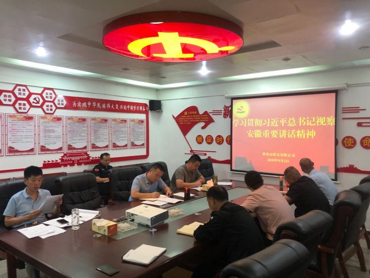 會(huì)議要求, 公司各部門(mén)、中隊(duì)采取多種形式組織學(xué)習(xí)貫徹,把學(xué)習(xí)習(xí)近平總書(shū)記考察安徽重要講話(huà)指示精神與學(xué)習(xí)貫徹習(xí)近平新時(shí)代中國(guó)特色社會(huì)主義思想結(jié)合起來(lái);與學(xué)習(xí)貫徹《習(xí)近平談治國(guó)理政》第三卷結(jié)合起來(lái),切實(shí)做到入腦入心、篤信篤行。緊緊圍繞習(xí)近平總書(shū)記考察安徽重要講話(huà)指示中明確的重點(diǎn)任務(wù)聚力用勁,立足保安工作職能,堅(jiān)持穩(wěn)中求進(jìn)工作總基調(diào),堅(jiān)持高質(zhì)量轉(zhuǎn)型發(fā)展,確保習(xí)近平總書(shū)記重要講話(huà)精神落地生根、開(kāi)花結(jié)果。