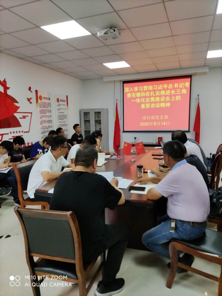 9月14日上午,淮海建工公司項(xiàng)目部黨支部在公司二樓黨員活動(dòng)室召開支部大會(huì),傳達(dá)學(xué)習(xí)習(xí)近平總書記視察安徽、在扎實(shí)推進(jìn)長(zhǎng)三角一體化發(fā)展座談會(huì)上的重要講話精神,支部全體黨員參加了會(huì)議。