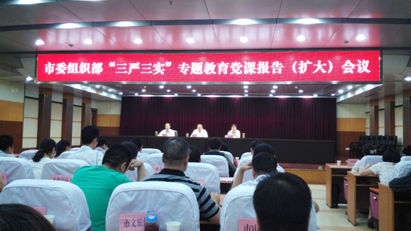 按照全市“三嚴三實”專題教育部署安排,結(jié)合“弘揚沈浩精神、建設(shè)模范部門”主題實踐活動,5月20日下午,市委組織部召開“三嚴三實”專題教育黨課報告(擴大)會議。市委常委、市委組織部部長、市政府常務(wù)副市長沈光繼出席會議,并為全市組工干部上了一堂生動的黨課。